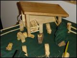 Unser Stall besteht aus einem Gatter indem zum Beispiel Ochs und Esel Platz finden und einem überdachten Vorbereich zur Lagerung von Stroh oder Gras. Die Rückseite ist geschlossen. |